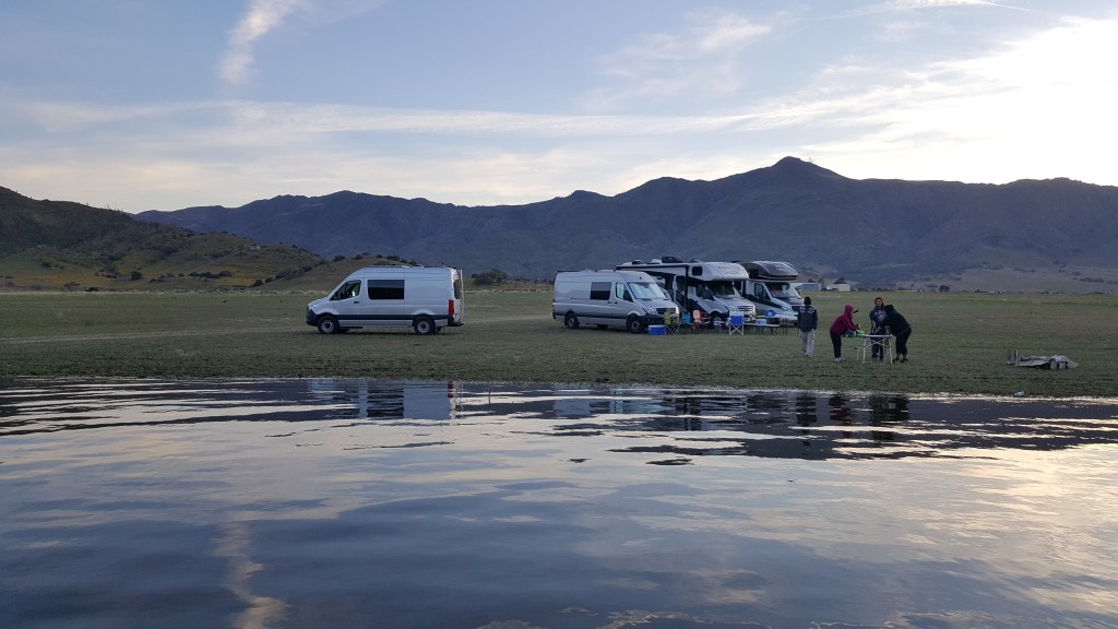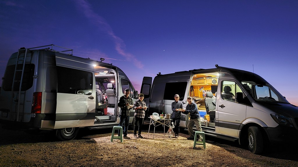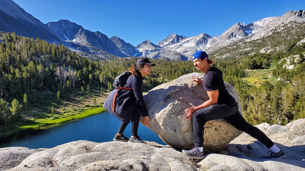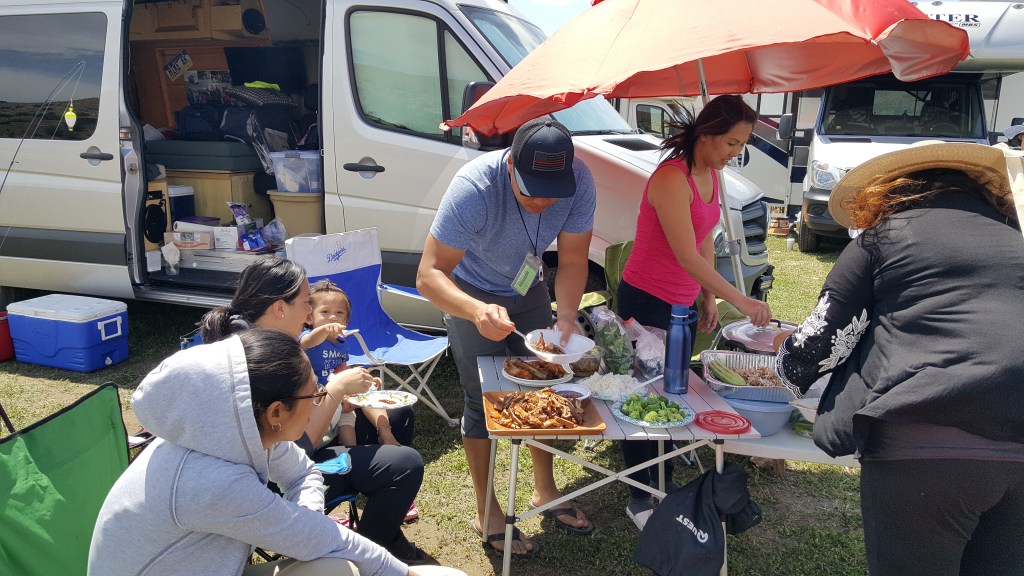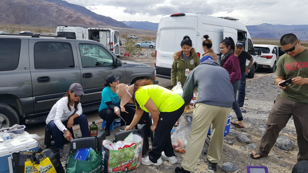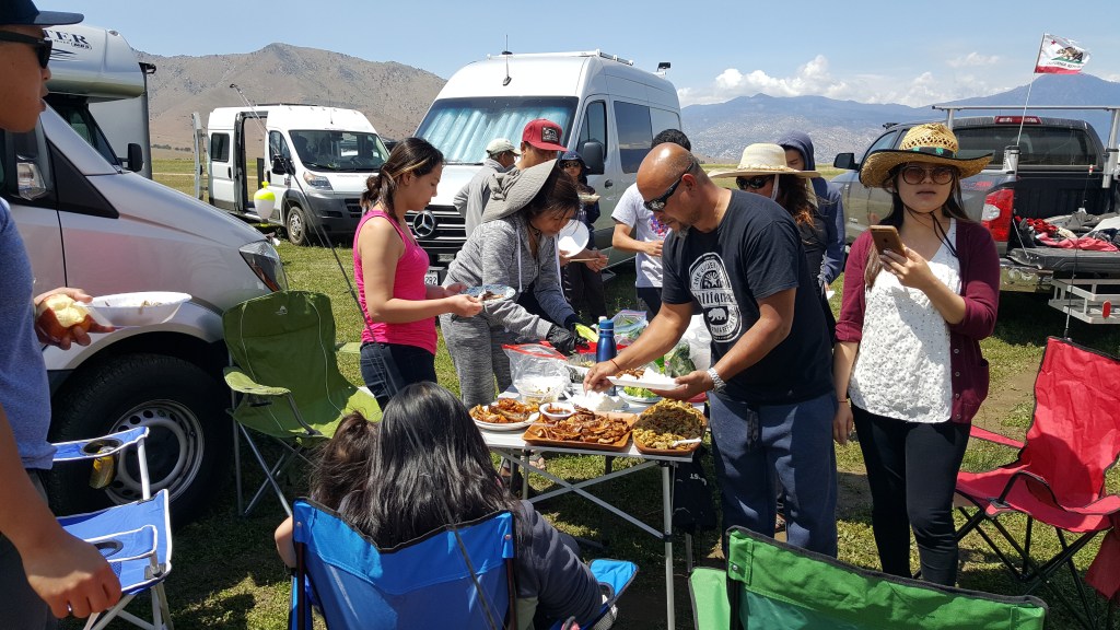 Sometimes when we’re out there mother nature is unpredictable especially in the high elevation. We have to come prepared. We always like to share our hot cook meal but if the weather does not corporate we have a back up food. Picture below is our memory from that time when Grant Lake was too windy to cook. We came back from a hike the wind was blowing things away. It’s microwave food time. We manage to warm up some food and huddle together in my van and still had a great time.
