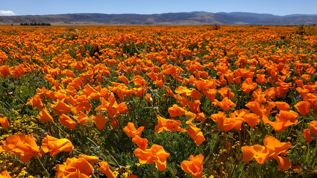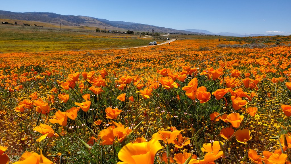 Great Crappie fishing here in the Spring. You can park close to the water in some area but away from the developed camp site so there’s no facility, pack in-pack out on your own. Good idea for a big group camping. On the other side of the lake Kern River flows in to the lake at the town of Woolford Height where you can enjoy the White Water rafting. On our way back we dropped by the flower fields “California Poppy Reserve”.