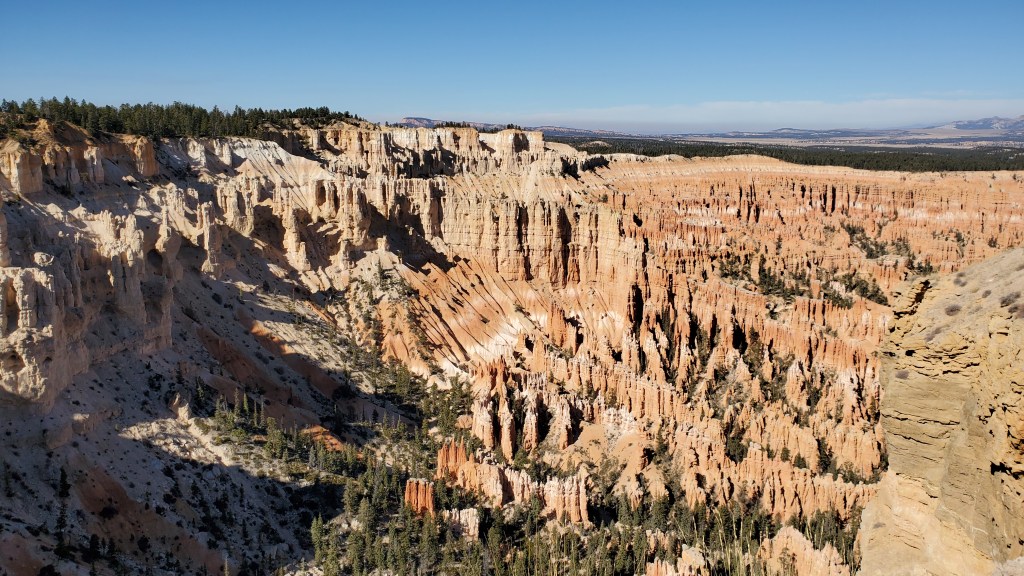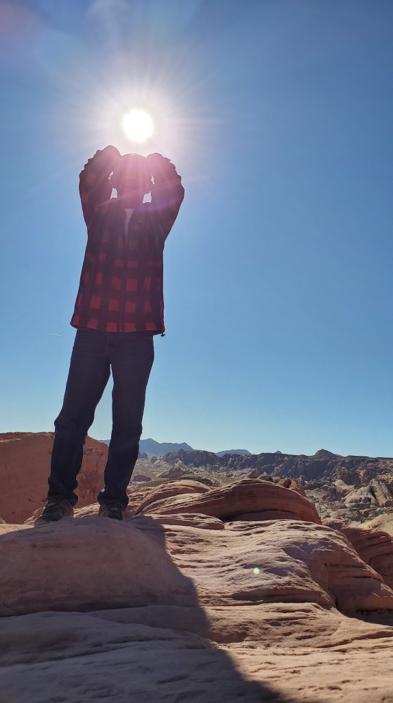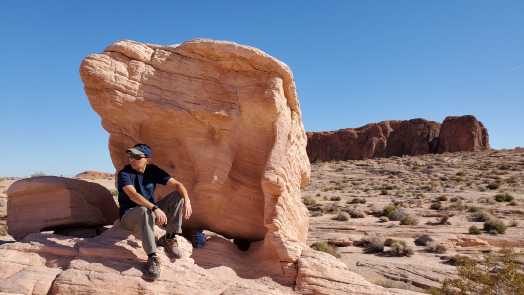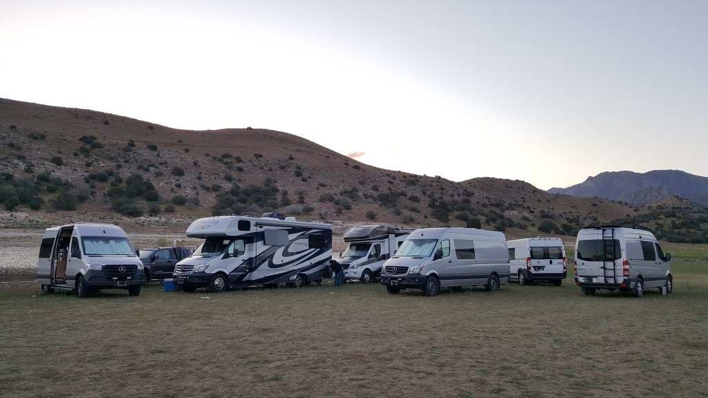 That same trip we went from Zion all the way to Bryce Canyon Nat’l Park and then drove all the way (4 hours) to north of Lake Mead and stayed at another free camping area on BLM land. This area is on SR 95 North two miles from Valley of Fire. It’s a nice large flat area on the hill with a view of the lake and nearby desert land scape. It’s easy for large RV’s access.
