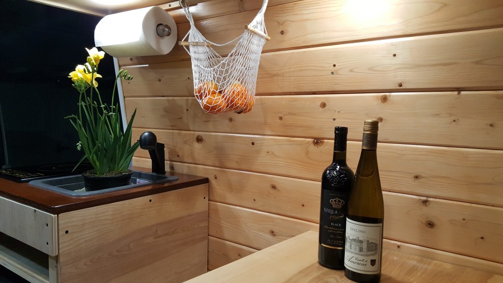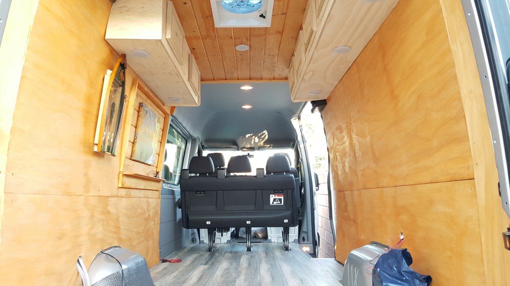 - After 26 trips to the Home Depot and hours of watching YouTube videos finally everything comes together. The van was completed and ready for the road test. We only stained the woods with Summer Oak color because we wanted it to see the natural wood look and feel like a cabin.