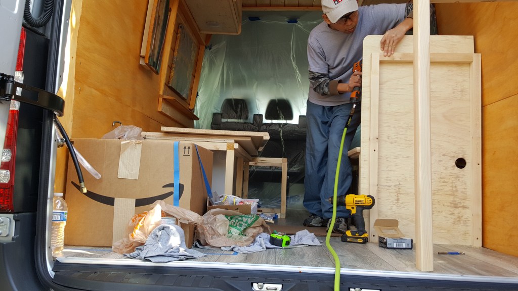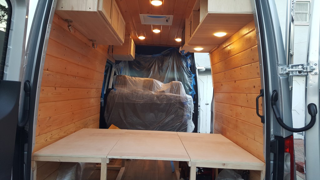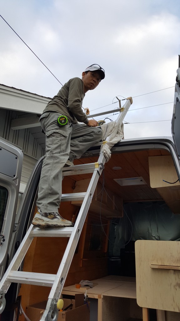 Our first try. I kind of have ideas planned in my head but my wife doesn’t. All she knew was that I’m building a bed and a shower in the van. I was so anxious to build it I started to tear down the ceiling panels the next day when we brought the van home. When my wife got home from work she freaked out. “Oh shoot honey the insurance haven’t seen the van and we’re not 100% sure that the loan went through yet!” Her reaction. That same day the dealership called. They told her that the bank accepted our loan and even offer a better rate. WEW!! Exciting.