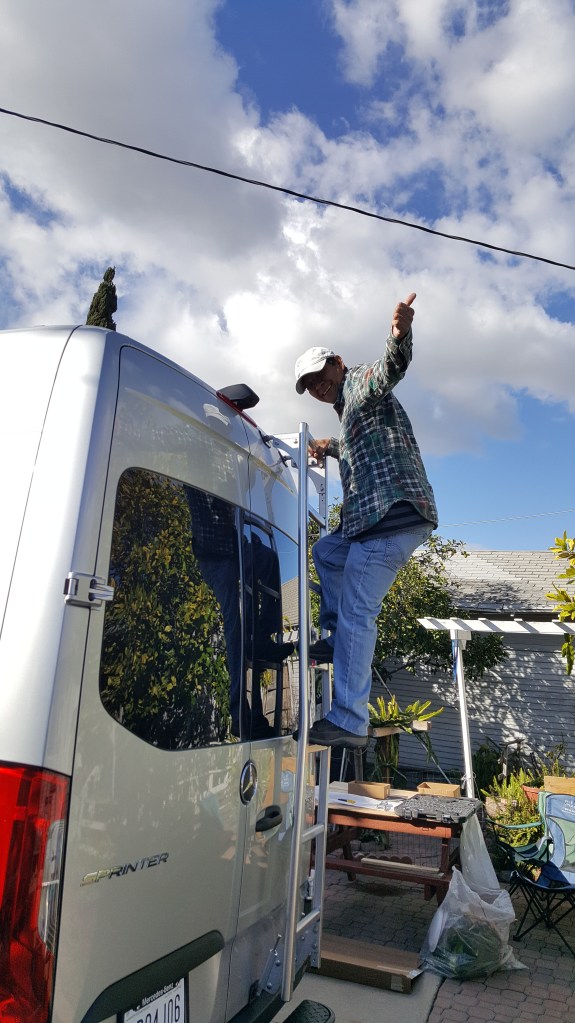 Uncle was too excited to see the ladder on the van. He tested the strength. And gave me a thumbs up.