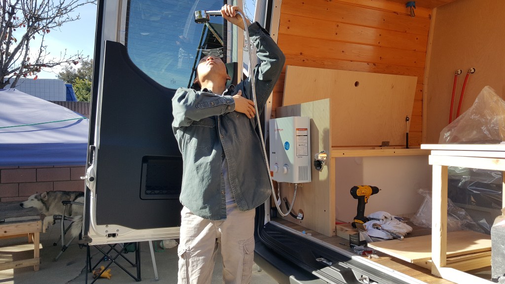 we’re almost done ! Now add instant hot water heater with external shower head for wash off.