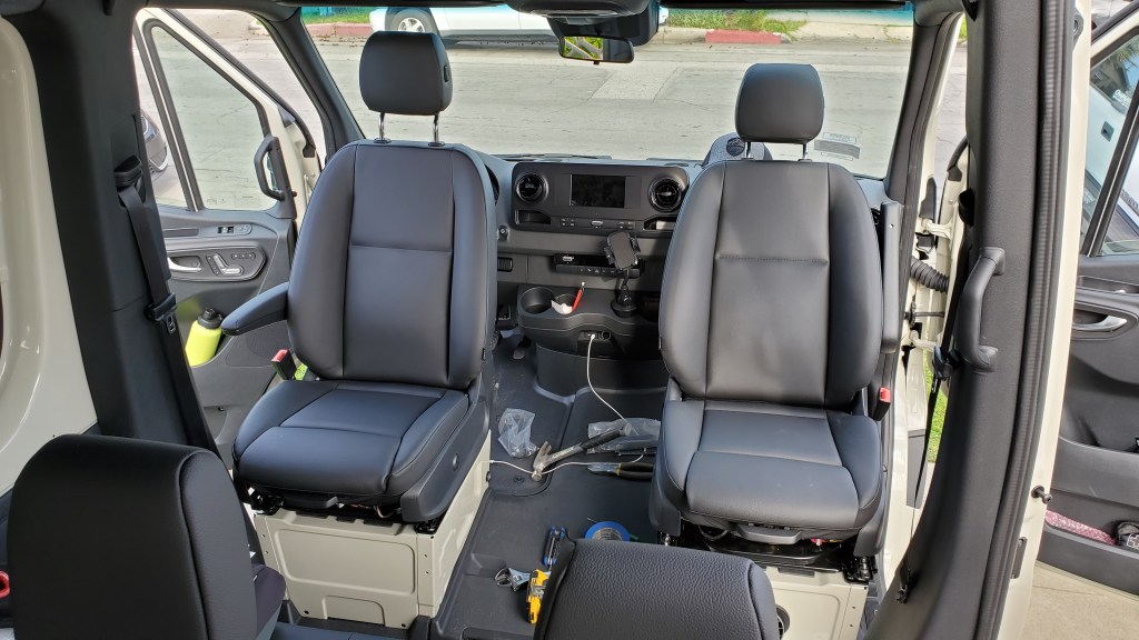 we installed the two swivel seat attachments. The are found on eBay and the work just fine.https://www.ebay.com/itm/Sprinter-seat-swivel-For-2007-2018year-Sprinter-Swivel-Rv-Swivel/223937555112?hash=item3423b7eaa8:g:JnsAAOSw~VBcQKWA